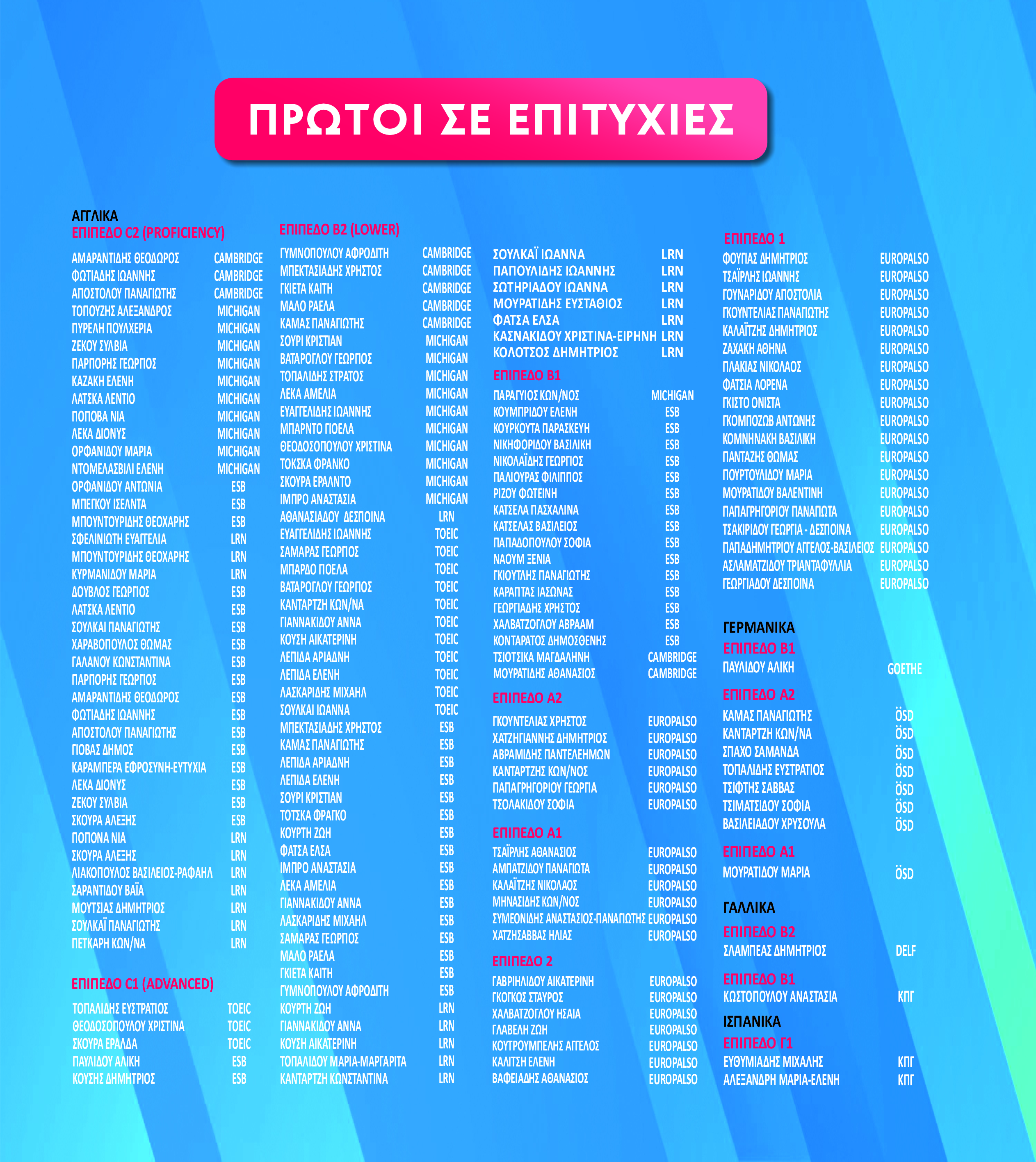 Συγχαρητήρια σε όλους τους μαθητές μας και στους καθηγητές τους